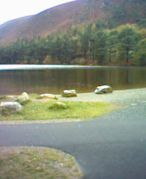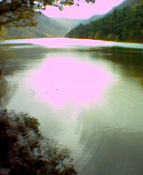 This is all part of Saint Kevin's Way. Saint Kevin was a nobleman sent into the church to sort himself out with booklearning and the like, and who lived halfway up the valley side. Apparently his betrothed fair maiden followed him to Glendalough and climbed all the way up to encourage him to come back and fulfill his marital duties. Being of the other persuasion he threw her down into the lake and killed her. This celebrated act of self-sacrifice (on his part) led to his beatification ! Bejazus !